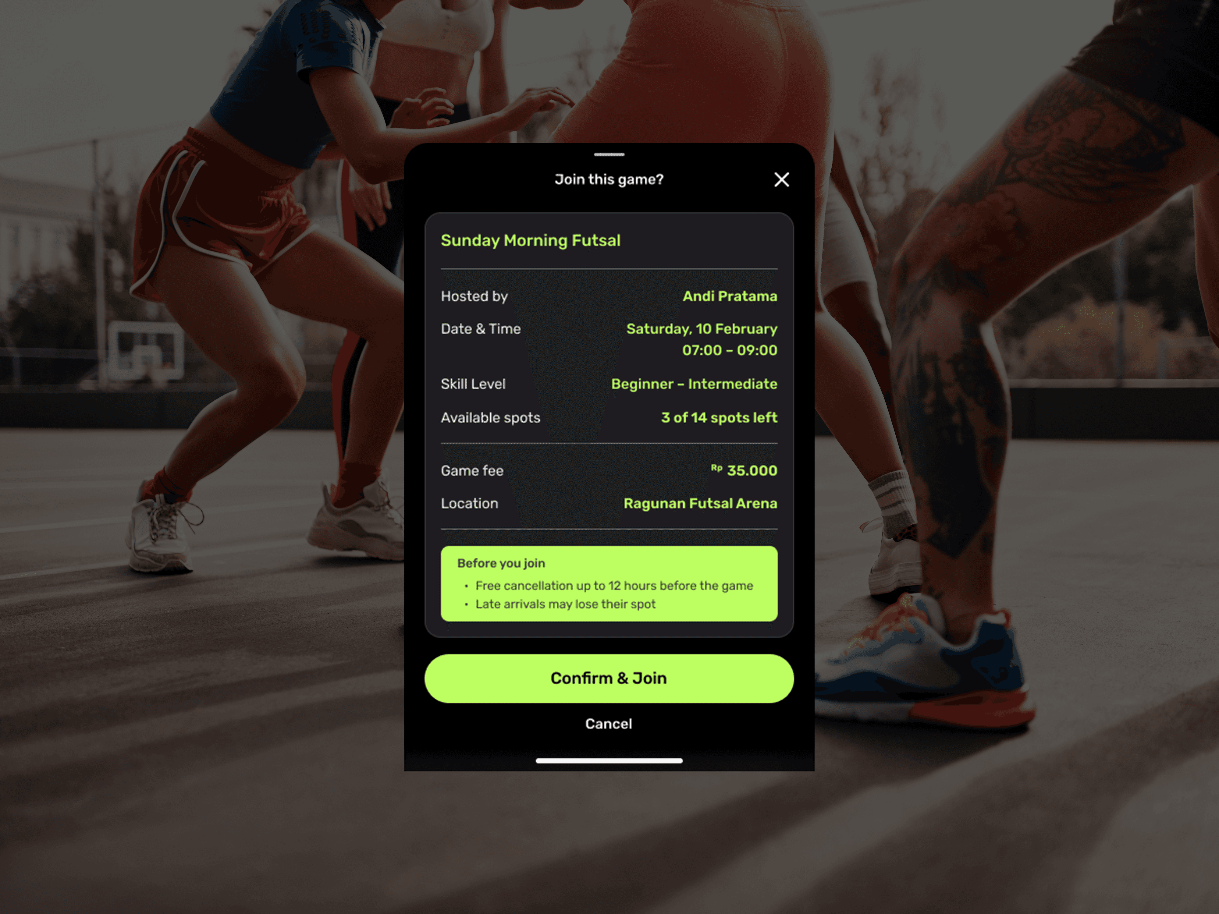 I designed the end-to-end experience, starting from the home dashboard, discovering games, viewing game details, joining a game, and completing payment using QRIS.